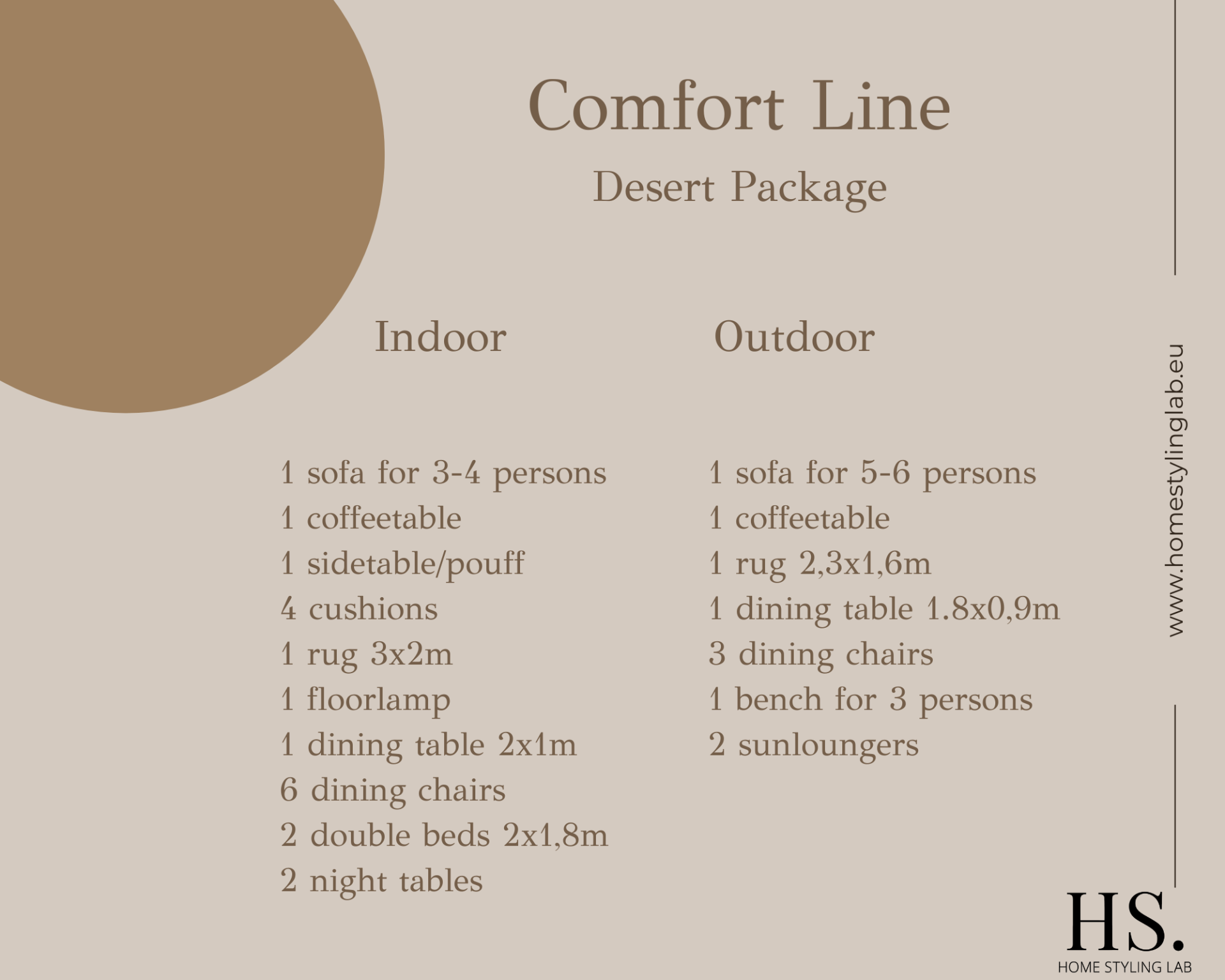 The Comfort Line Desert package is the perfect choice for those who love soft southern colours and a refined, elegant style. This package offers a warm and inviting ambiance that will transform your space. You can choose from a range of colours to give your flat or villa a personal touch. Each option has been carefully selected to ensure harmony and style in your new home. In addition, your furniture will be delivered and installed, so you can move into your new home under the bright Calabrian sun without any worries. Let us help you turn your property into a cosy home.