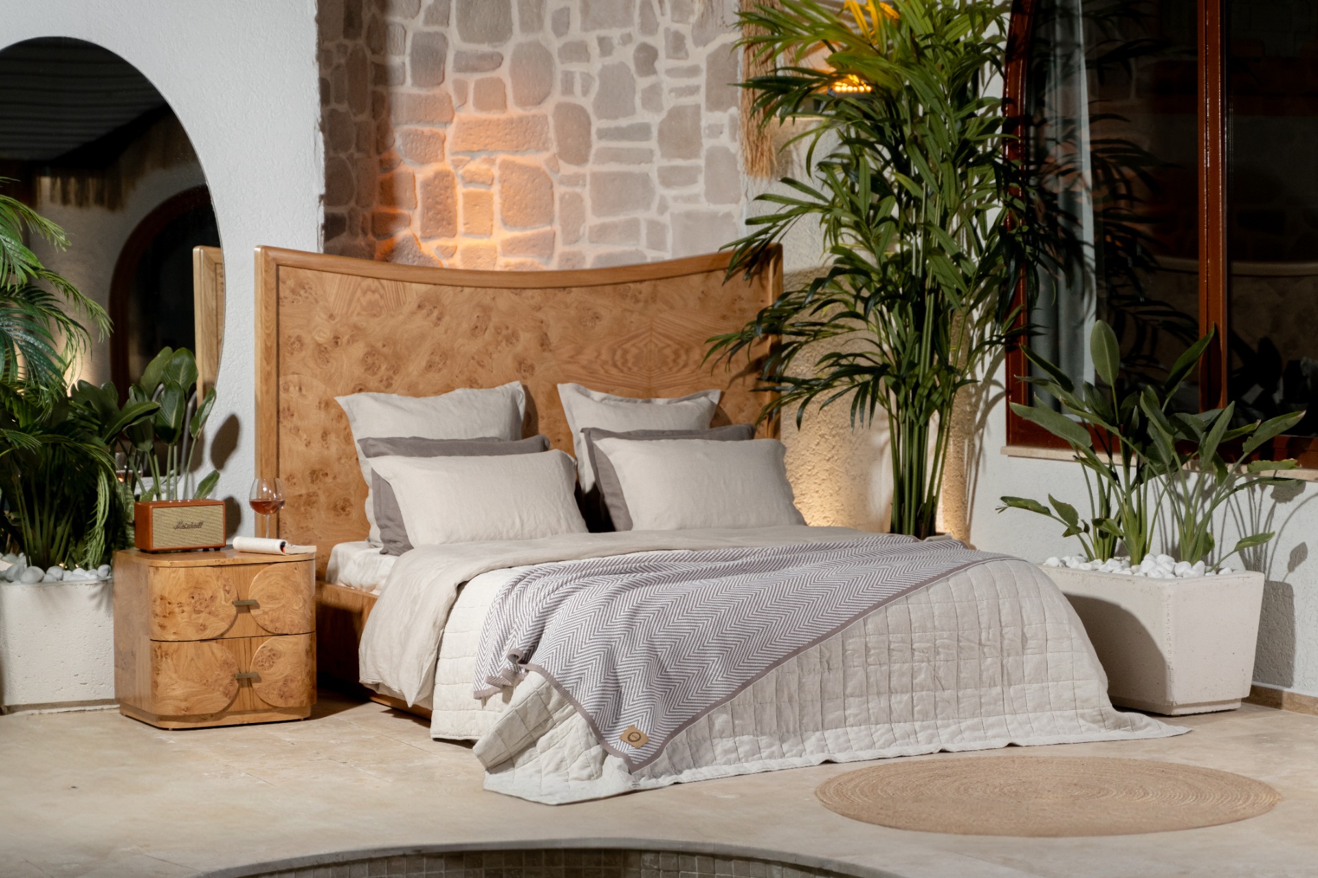 Our bed linen blends timeless elegance with pure comfort. Woven from exquisite natural fibers, it offers refined softness, understated luxury, and a serene sleep experience inspired by artisanal tradition.
