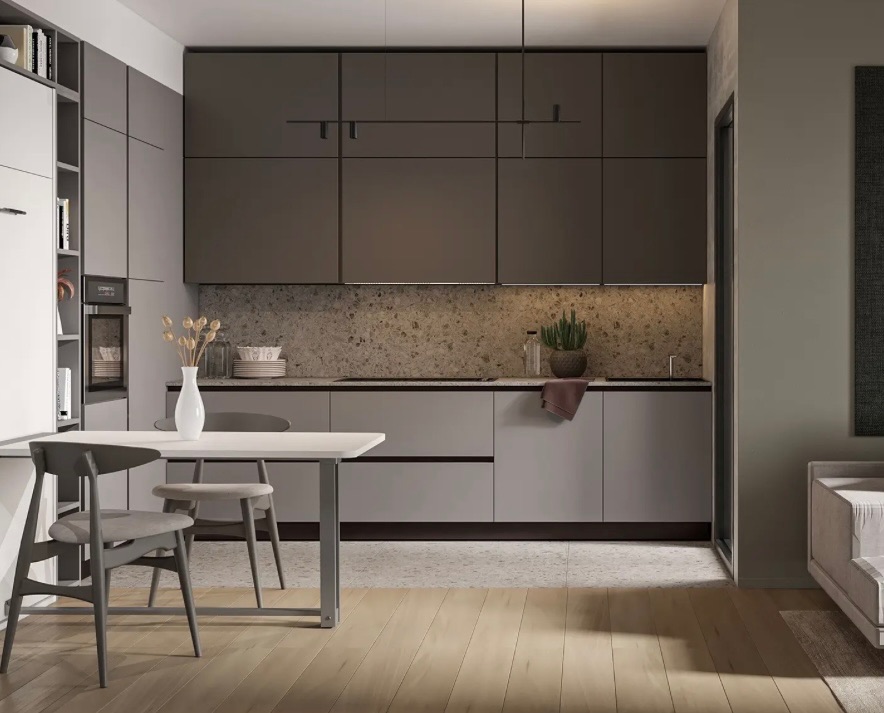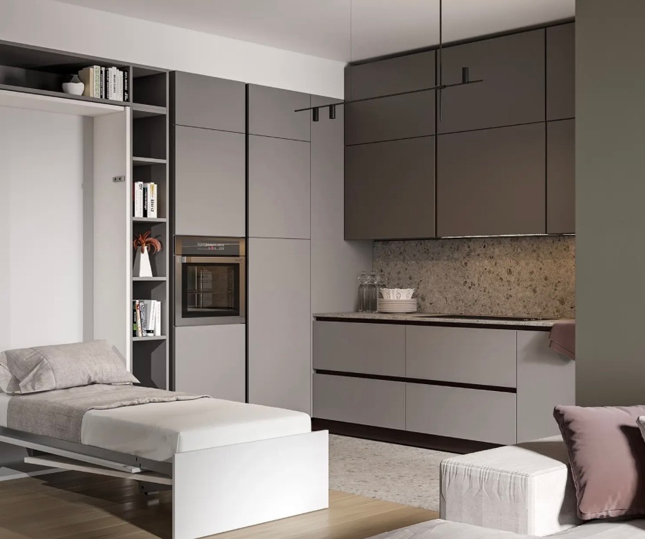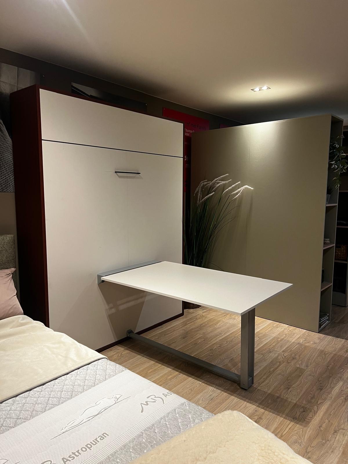 The Nurdine combines a refined dining table with a comfortable bed—an ideal solution for studios or compact apartments. With a smooth sliding mechanism, the table seamlessly moves beneath the bed as it unfolds, allowing you to transform your space with ease and elegance.